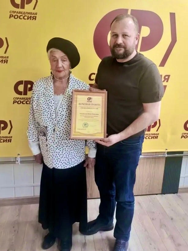 На недавнем заседании Совета регионального отделения партии "СПРАВЕДЛИВАЯ РОССИЯ" была вручена почетная грамота Нине Павловне Землянской – члену Совета регионального отделения!