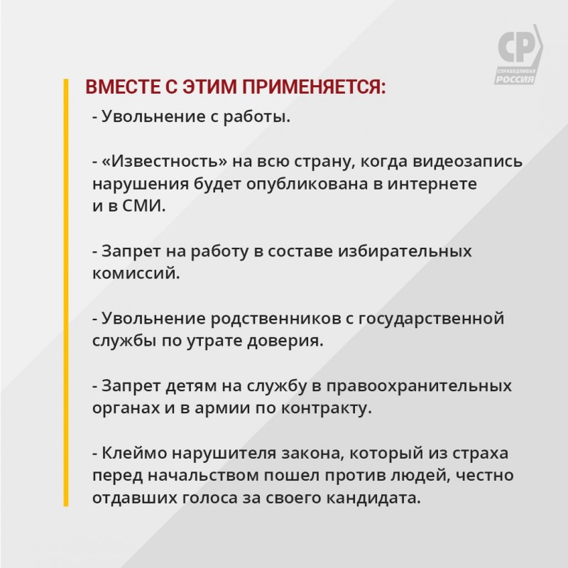 Мы решили напомнить наблюдателям и членам комиссий, что фальсификация – это уголовно наказуемое преступление и подготовили памятку о том, что является нарушением на выборах, и какая ответственность за это последует. Люди должны быть уверены в том, что их голос будет защищен. Мы призываем всех идти голосовать по совести и по справедливости, а если вы станете свидетелем фальсификаций на выборах, сразу же сообщайте об этом. ![]() ![]() ![]() ![]() ![]() ![]() |