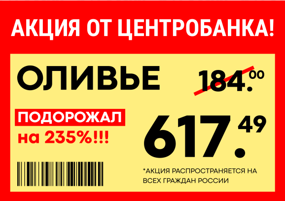Организаторы мероприятия акцентировали внимание на "Индексе Оливье": за время нахождения Эльвиры Набиуллиной во главе ЦБ цена на салат выросла на 235% – со 184 до 617 рублей.